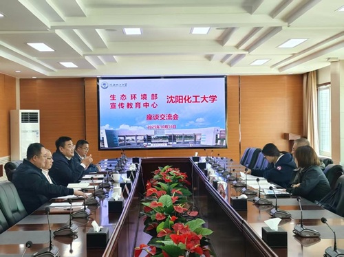 10月16日,生态环境部宣传教育中心培训室(党校工作部)主任刘之杰,项目主管赵欢、张嘉祎一行莅临我校,围绕生态文明宣传教育、交流合作共建等议题开展调研交流。副校长于三三,统战部部长肖于波,我院院长朱明昌、副院长刘丹丹,经济与管理学院副院长刘铁民,沈阳化工大学能源化工装备制造有限公司总经理赵丹参加会议。